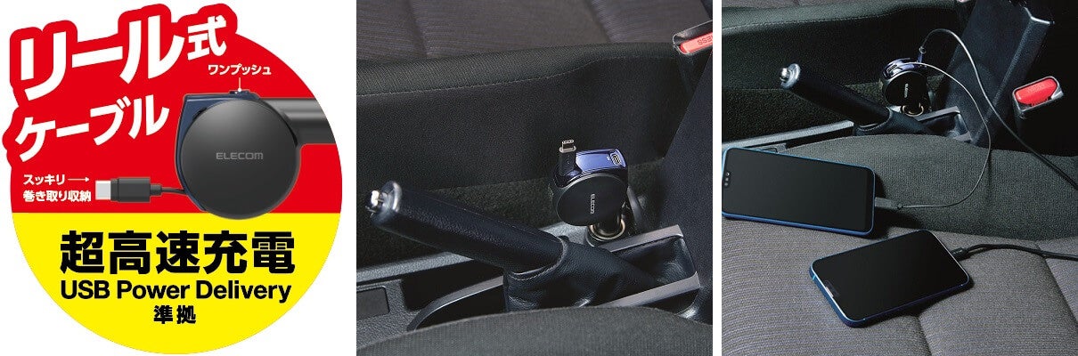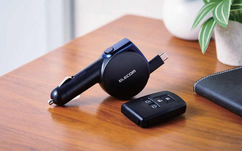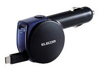 - USB Type-C(USB-C)対応、1ポート+巻き取り式ケーブル搭載の車載充電器
