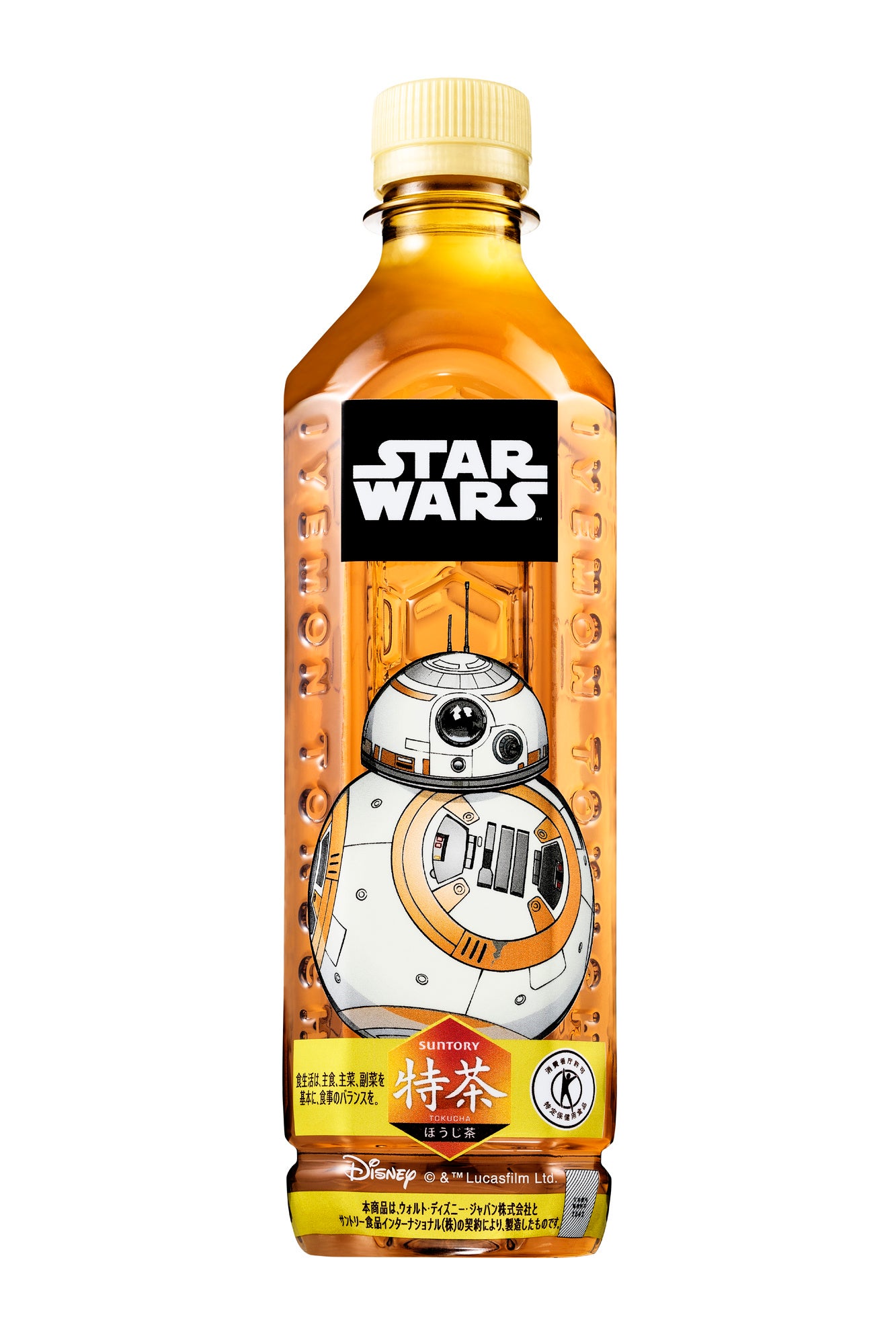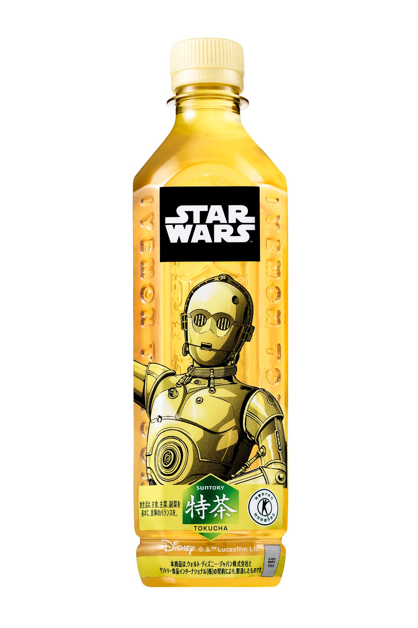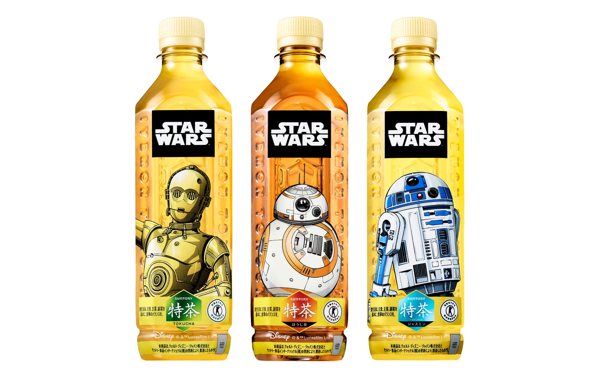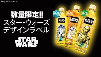 今回のデザインラベルは、2013年の「特茶」発売以来、初のデザインラベルとなります。現在TV-CMに起用している「スター・ウォーズ」の作中で主人公のパートナーとして登場する大人気のドロイド(個性と感情を兼ね備えた電子機器)の「C-3PO」、「R2-D2」、「BB-8」。異なる特性を持つ3体のドロイドのデザインを楽しんでいただくと共に“体脂肪を減らすのを助ける”3つの異なる味わいを持つ「特茶」をご堪能頂けるデザインです。