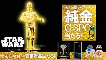 また、2022年9月より「金の特茶 希望の光」篇と銘打ち、特茶を〈闇と戦う希望の光〉と見立てたCMを放映しており、「特茶 スター・ウォーズデザイン ラベル」の発売を記念し、スター・ウォーズデザインの特茶ボトルの形をした「特茶ランタン」が当たるキャンペーンを実施します。さらに、デザインラベル発売直前の2023年1月6日(金)より、純金の「C-3PO」や自宅で「スター・ウォーズ」の風景を体験できるオリジナルグッズなどが当たる「金の特茶」キャンペーンを実施します。これらさまざまな豪華景品が当たるキャンペーンを、ぜひお楽しみください。