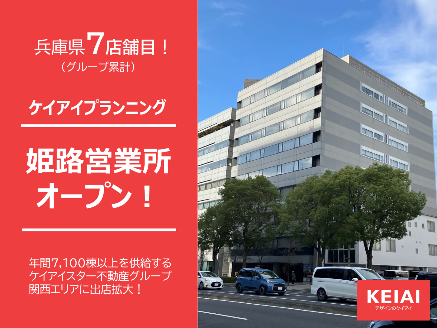 また、当社グループは、関西エリアにおいても積極的な展開をしており、現在滋賀県、京都府、大阪府、兵庫県に出店しています。その中でも兵庫県は、ケイアイプランニングが2021年6月に関西エリア初の拠点として出店しており、今回の出店により兵庫県内の拠点は7店舗目となりました。