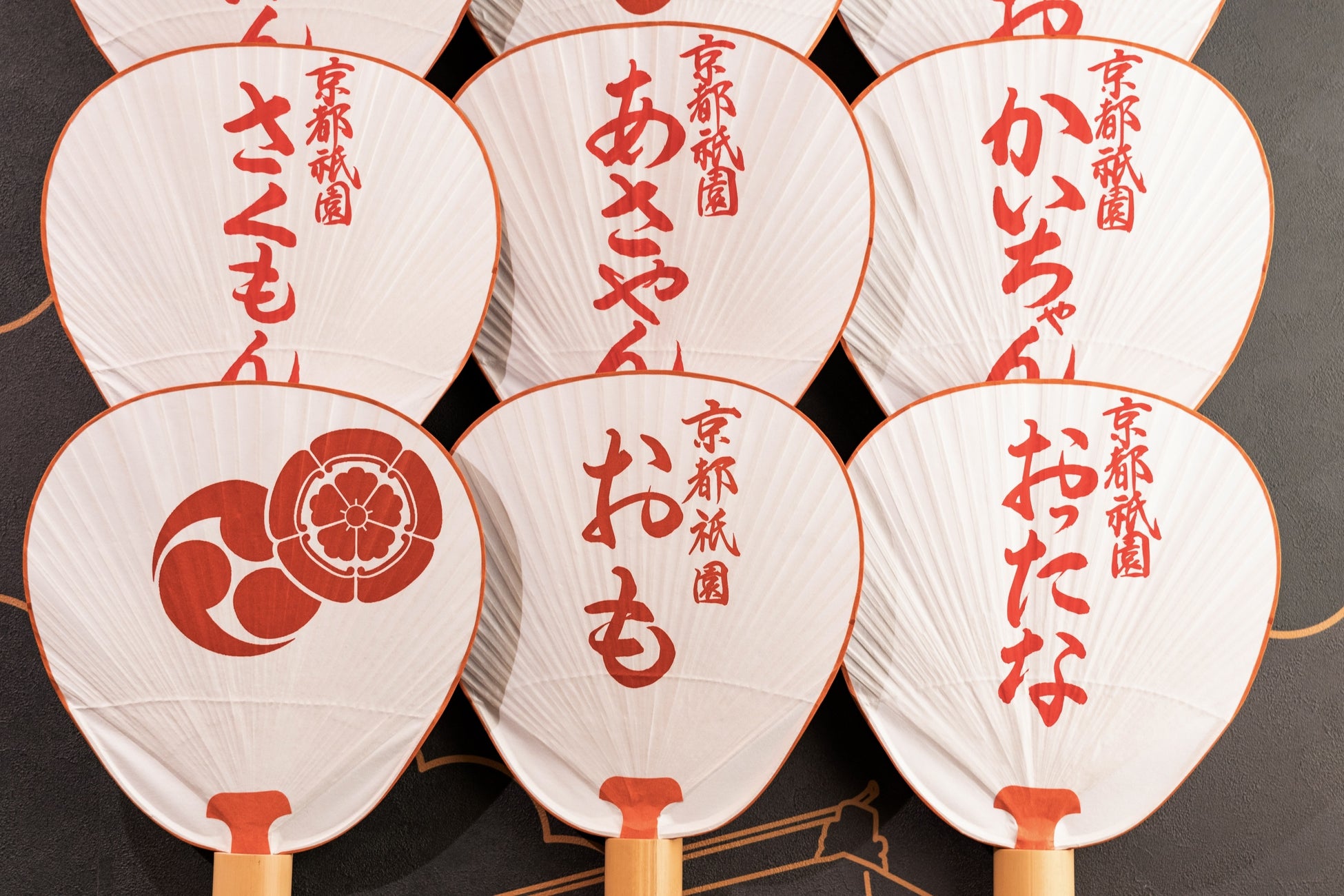 芸舞妓がお茶屋や料亭に配る京丸うちわを作り続けている「小丸屋 住井」に名入れうちわを注文できます。名入れされる面のもう片面は、八坂神社の神紋「唐花木瓜紋」が印字されます。自分の名前が入った京丸うちわを持って涼みながら、夜の祇園祭散策や御千度詣をすると、より祇園祭の雰囲気を感じられます。