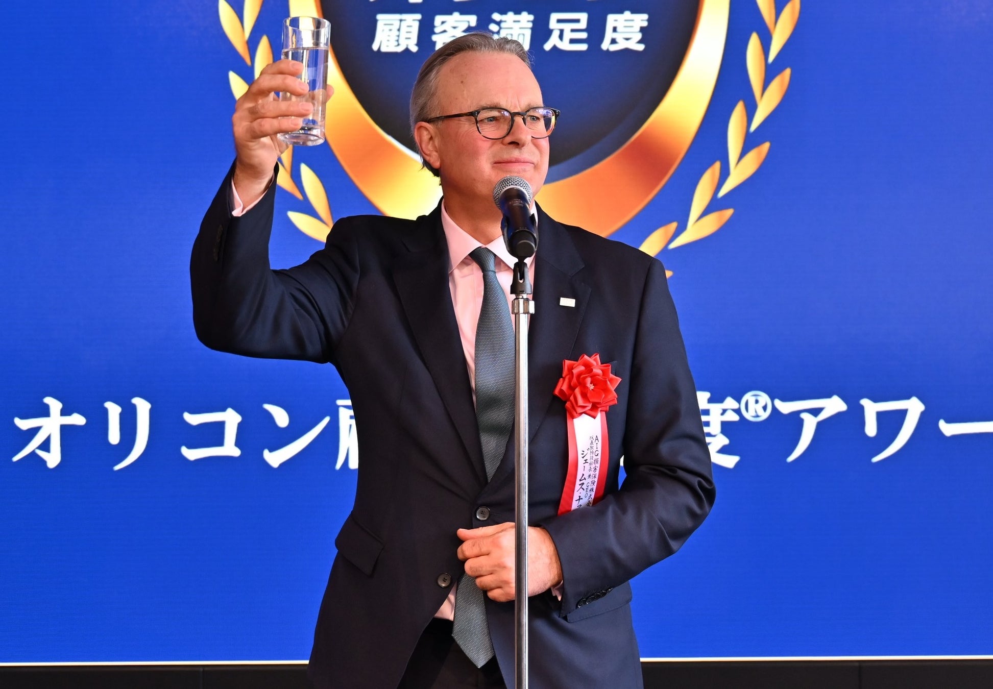 つづいて、2024 年 オリコン顧客満⾜度®調査 ⾃動⾞保険 代理店型ランキングで3 年連続5 度目の総合1 位を受賞したAIG 損害保険株式会社 代表取締役社⻑ 兼 CEO ジェームス・ナッシュ⽒が乾杯の挨拶に登壇。「複雑化する世界の中で、お客様に対し、より安心をお届けし、耳を傾け、寄り添い、⽇々良いサービスを提供していくべく精進していきたい。そして、受賞者の皆様、私共にとって、やはりお客様からの満⾜度評価を受けることこそが最も⾼い栄誉であり、オリコン顧客満⾜度はお客様からの満⾜度を評価することができる信頼の⾼い指標」と述べ、乾杯しました。