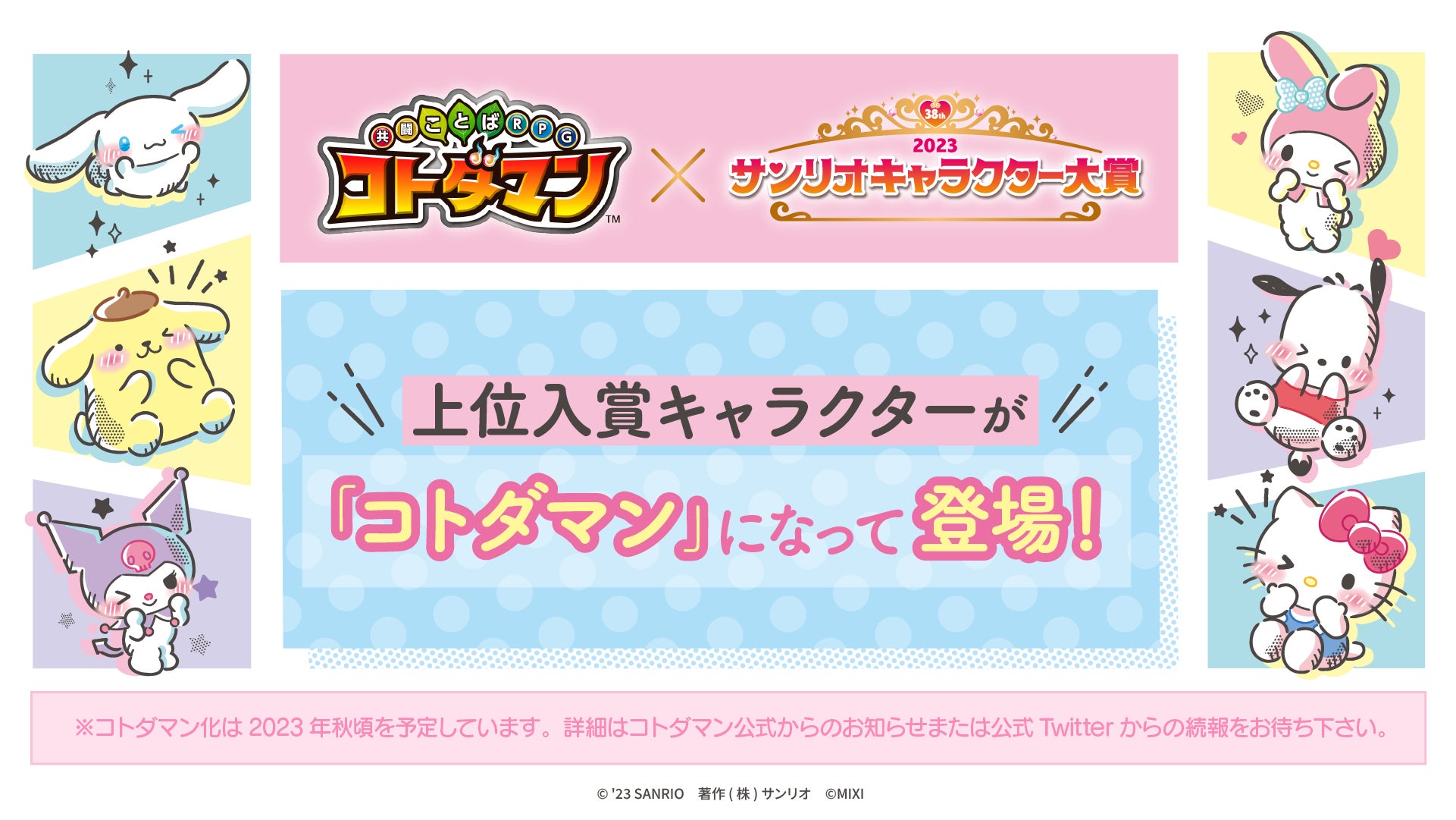 投票連携企画を実施していた新感覚RPGゲームアプリ「共闘ことばコトダマン」では、「2023年サンリオキャラクター大賞」の上位キャラクターたちがコトダマンになって登場します。