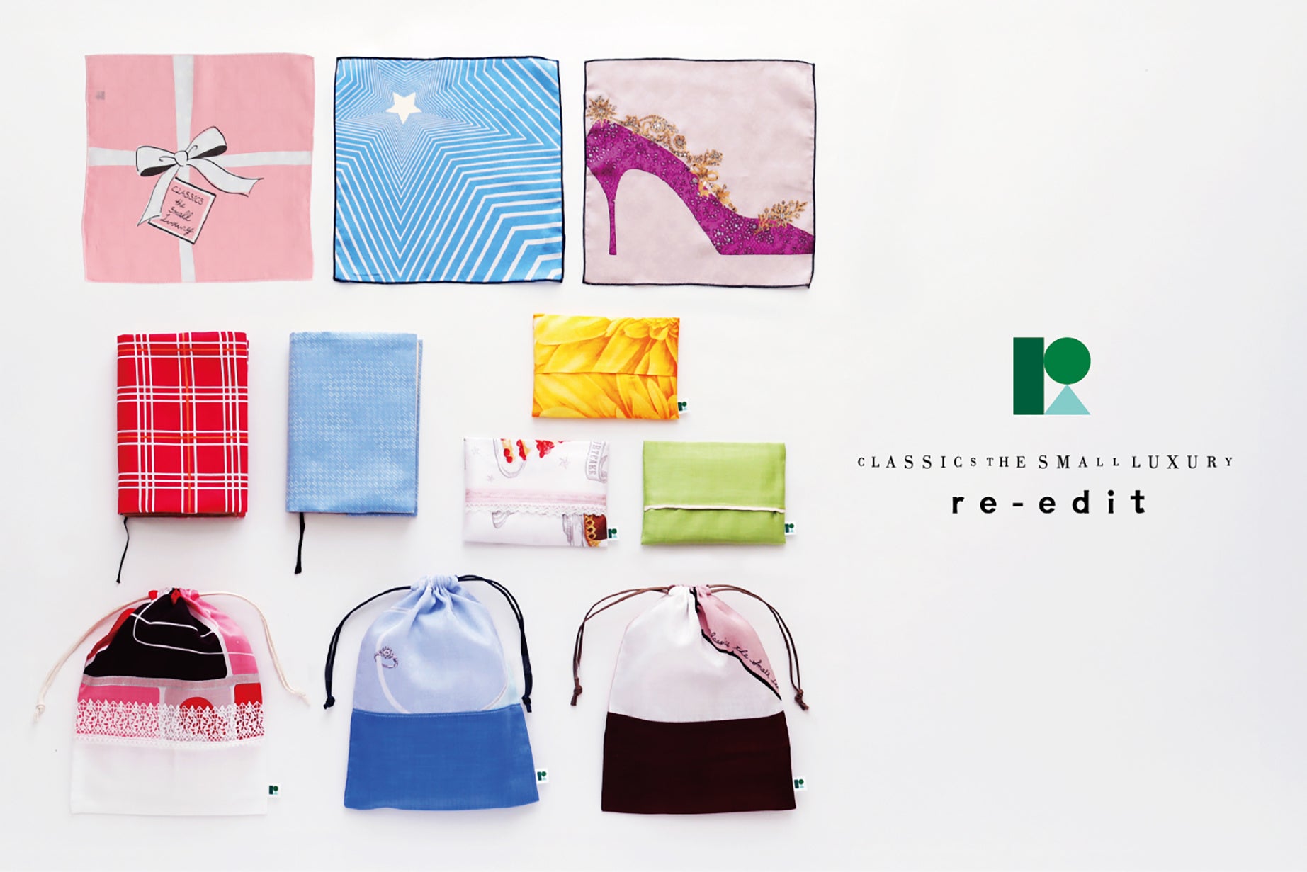 製造工程で時々でてしまう、生地にほんの小さなキズや汚れがついたハンカチーフがあります。従来ならば破棄されるはずだったそれらに再び息を吹き込み、新たに誕生したのが「re-edit」の商品です。