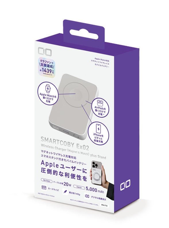 株式会社CIO(本社:大阪府守口市)は、応援購入サービス「Makuake」にて約1,400万円を超えるご支援をいただき製品化した、iPhoneもApple Watchも充電可能なモバイルバッテリー『SMARTCOBY Ex02 Wireless Charger(Magnet & Watch) plus Stand』のドン・キホーテ限定カラーホワイトを全国のドン・キホーテ店舗にて順次販売開始します。(一部店舗除く)