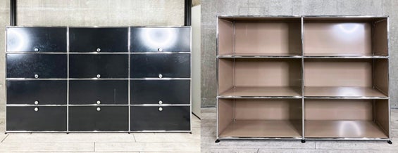 「USMハラー キャビネット」をオススメ。骨組みのスチールフレームは、強固で頑丈な構造で耐久性はバッチリ。パネル部分は傷や汚れに強く、長時間使用しても劣化しにくくなっています。