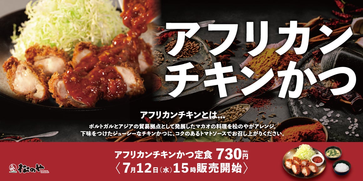株式会社松屋フーズ(本社:東京都武蔵野市、代表取締役社長:瓦葺 一利)では、とんかつ専門店の「松のや」におきまして、2023年7月12日(水)午後3時より、「アフリカンチキンかつ」を発売いたします。
