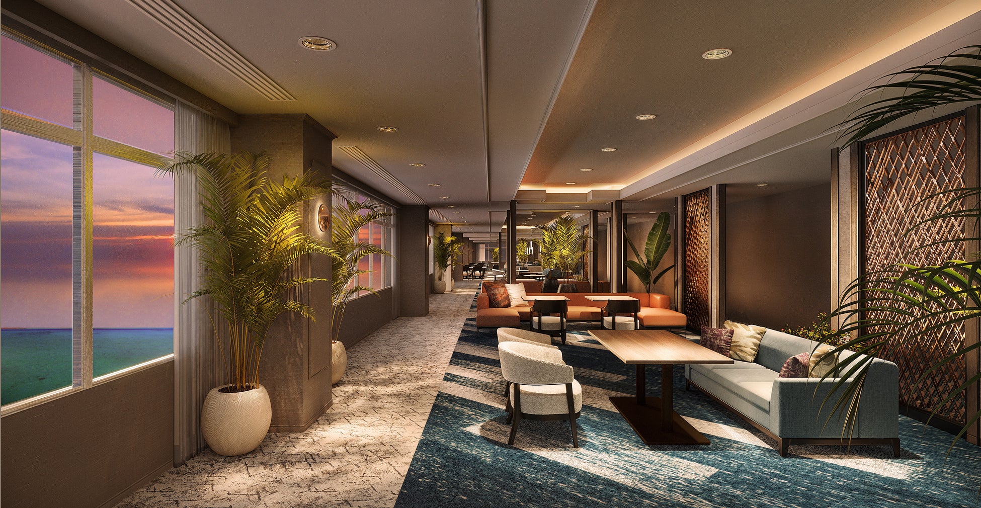 沖縄有数の景勝地「残波岬」に位置するビーチリゾート「グランドメルキュール沖縄残波岬リゾート」(所在地:沖縄県中頭郡読谷村字宇座1575番地/総支配人:手塚 秋啓)は2025年7月26日(土)、ホテル最上階の13階に「Executive Lounge(エグゼクティブラウンジ)」をオープンします。沖縄の美しい海や絶景スポットとされる残波岬の夕陽を望むことができ、時間帯に合わせて提供するメニューとともにゆったりと過ごせるラウンジです。なお、当ラウンジはエグゼクティブフロア(10階~12階)をご予約のお客様限定でのご案内となり、2025年5月19日(月)に予約受付を開始します。