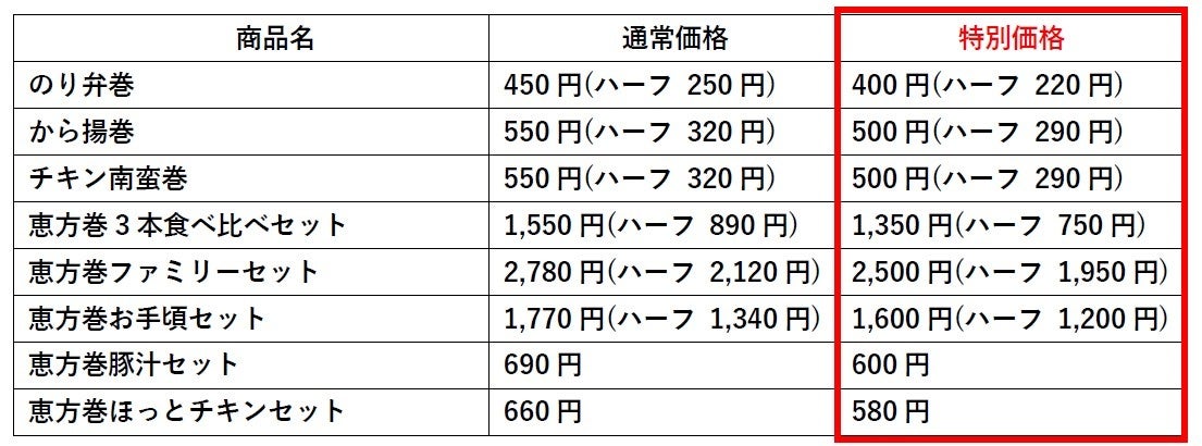 このたび「ほっともっと」では、大人気の弁当メニューを恵方巻にした「ほっともっと」の恵方巻を、2月1日(木)より4日(日)まで販売いたします。また、店頭や恵方巻専用予約サイトよりご予約いただくと最大280円引きになる、特別価格のお得なキャンペーンを実施いたします。