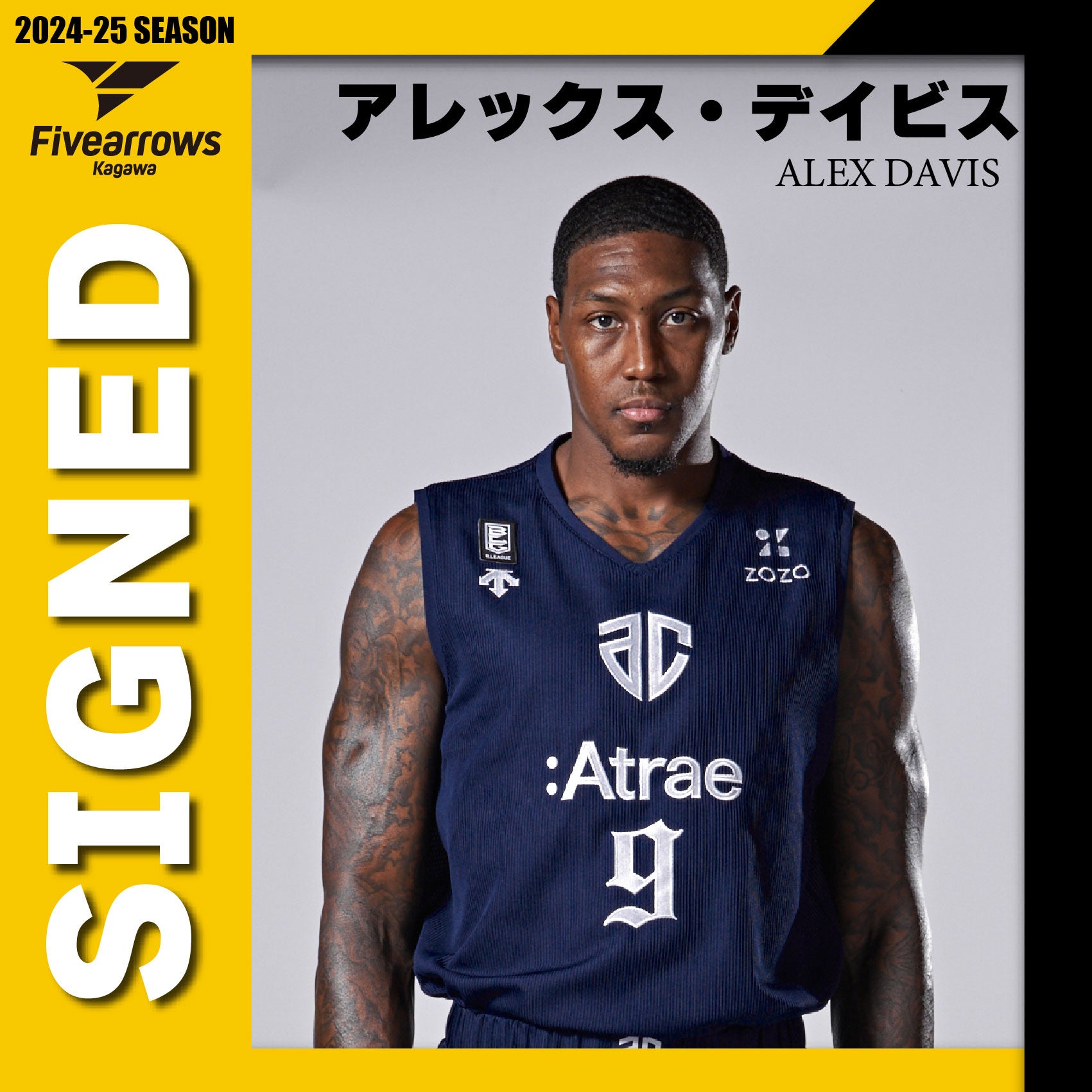 このたび香川ファイブアローズでは、アレックス・デイビス選手との2024-25シーズンの選手契約が決まりましたので、お知らせいたします。