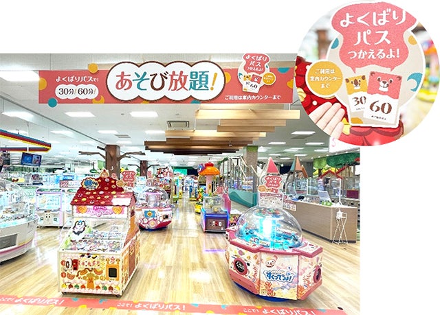 「モーリーファンタジー ヨドバシ仙台店」では、ますます人気が高まるクレーンゲームをはじめとするプライズゲームやメダルゲームを取りそろえるだけでなく、時間内定額で対象のゲームが遊び放題になるモーリーファンタジー・PALOだけのサービス「よくばりパス」を導入します。「よくばりパス」は30分500円からのりものや体感ゲームなど対象のゲームが遊び放題になり、「スウィートランド」「すくってちょ」などすくって遊ぶゲームも一定金額分プレイできるオトクなサービスです。