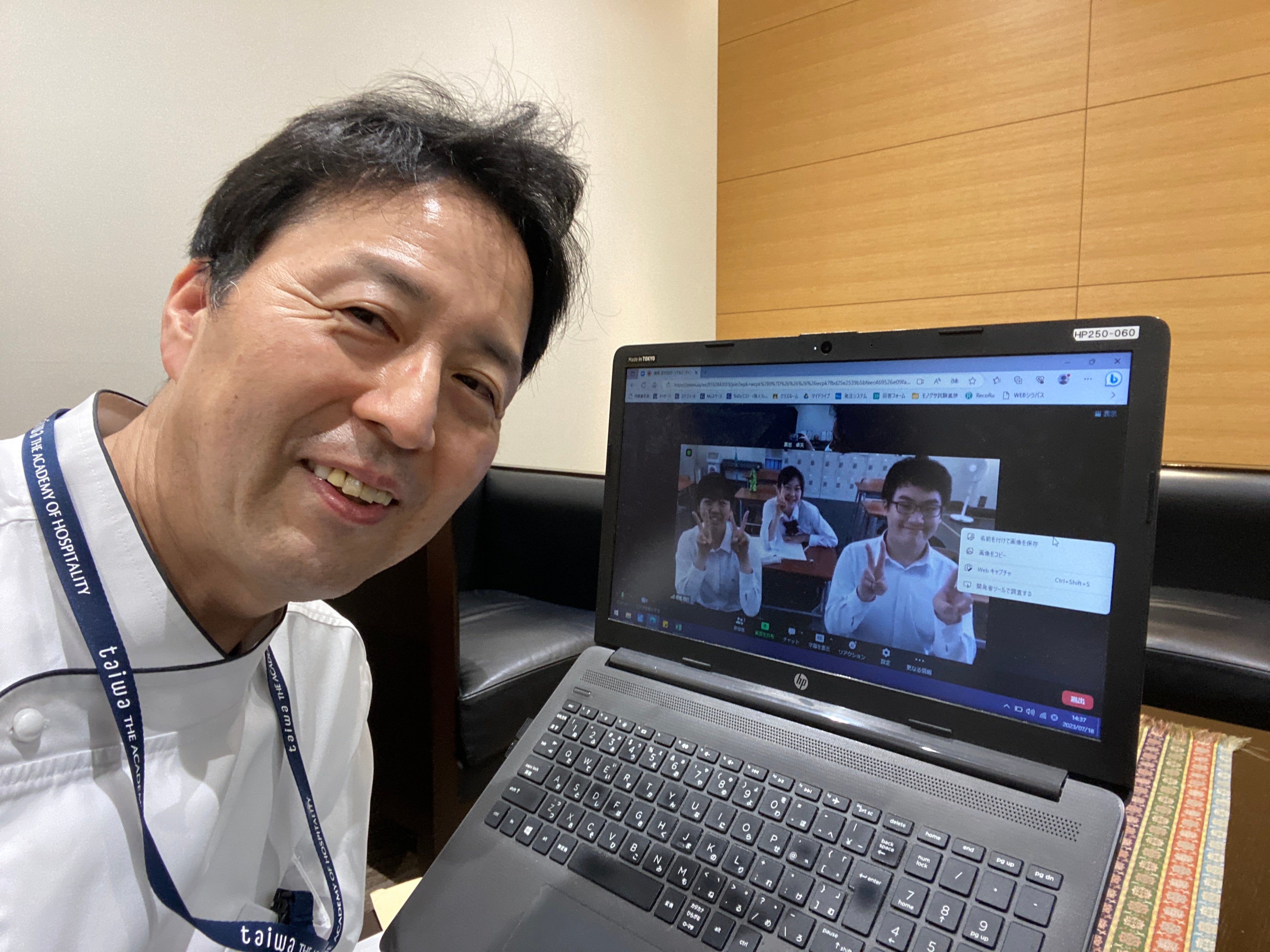 アドバイスはZOOM会議形式で行われ、3名の生徒たちとあらかじめ試食させていただいた試作品について、