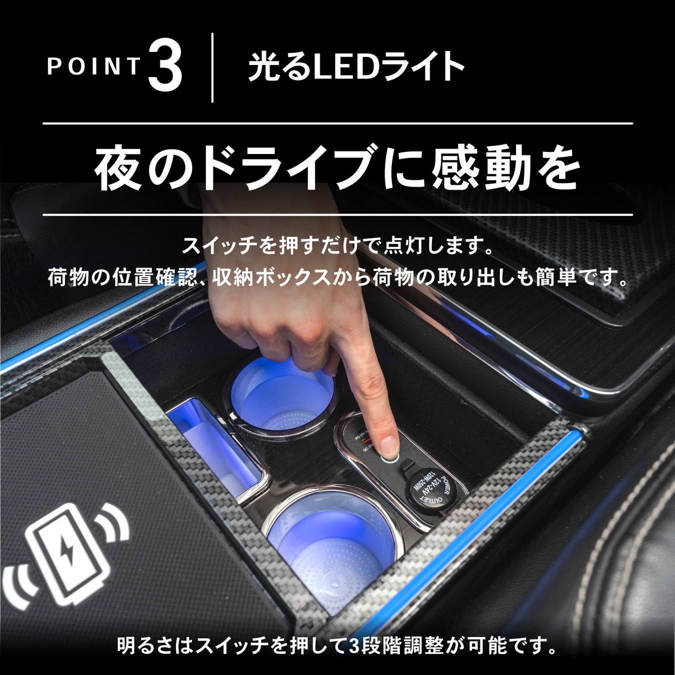 オデッセイ 専用 RC系 専用 LEDアームレスト/コンソールボックス。簡単設置で散らかる小物をすっきり収納。タイプA、タイプCシガーソケットを完備。夜も安心のLED。