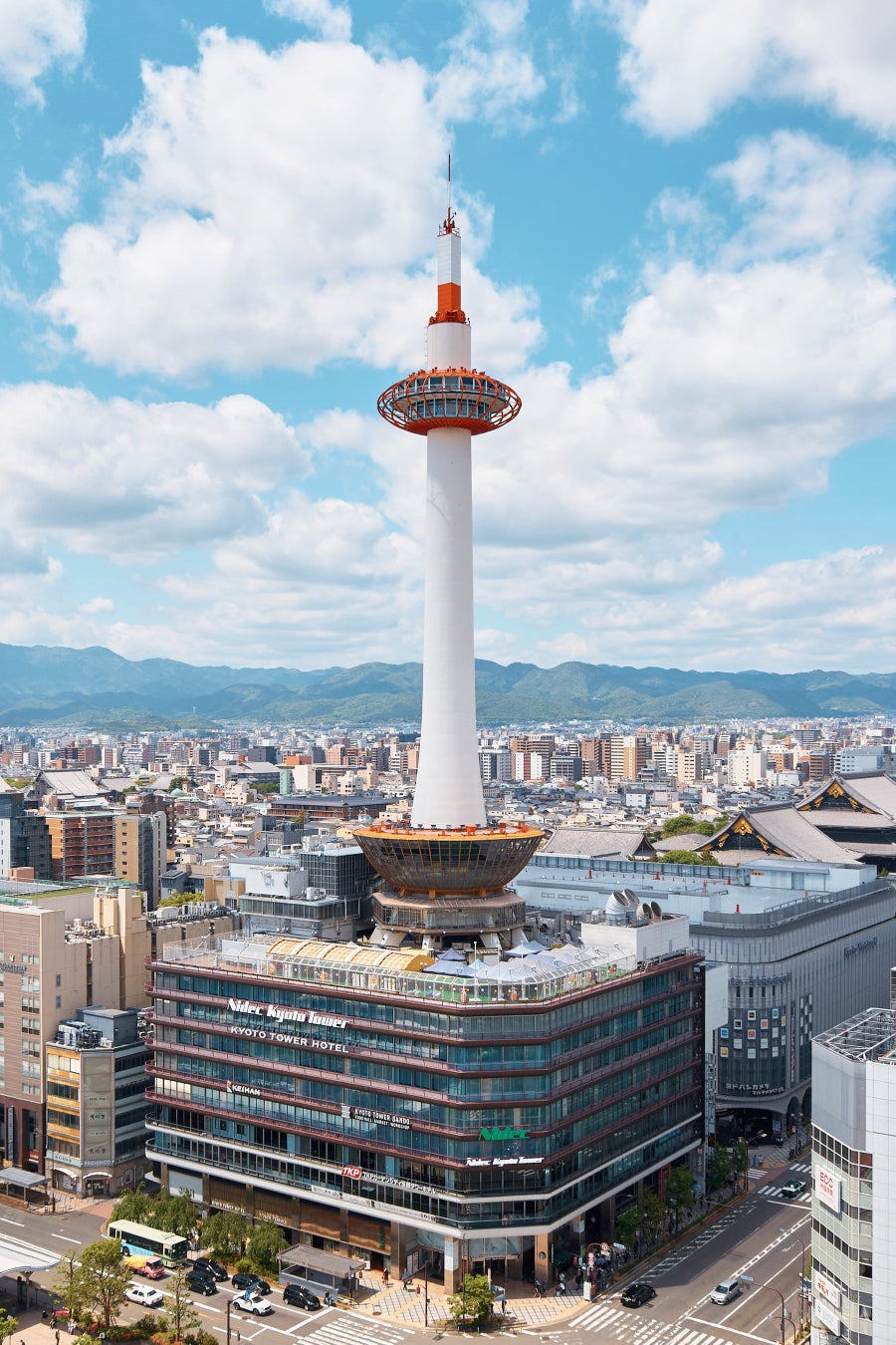 ‟産業・文化・観光の一大センターとして活用し、京都市の伸展に貢献する“ことを目指し建てられたタワー。白くなめらかなフォルムは鉄骨を使わないモノコック構造で、海のない京都の街を照らす灯台をモチーフにしています。2024年4月よりネーミングライツとして「ニデック京都タワー」に施設名を変更いたしました。