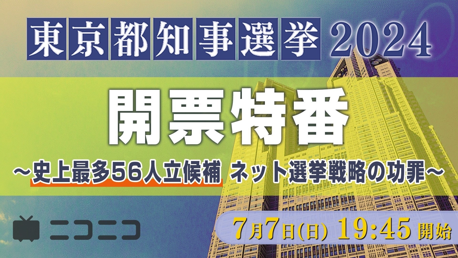 【東京都知事選 2024】 立花孝志氏、候補者、識者出演 「開票特番〜ネット選挙戦略の功罪」を ニコニコニュースchで生配信 〜小池ゆりこ氏、石丸伸二氏、蓮舫氏らとのクロストークも実施〜