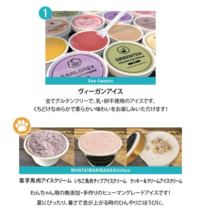 乳・卵不使用&グルテンフリーのヴィーガンアイスや、ヒューマングレードの無添加ワンちゃん用アイスまで、家族みんなで楽しめるラインナップ!