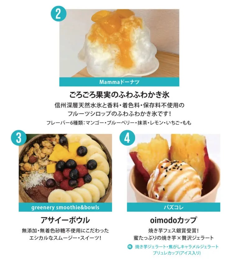 期間限定の「FROZEN SWEETS MAP」では、提供するお店ごとに個性あふれる“夏の逸品”が楽しめ、食べ歩きにもぴったり。