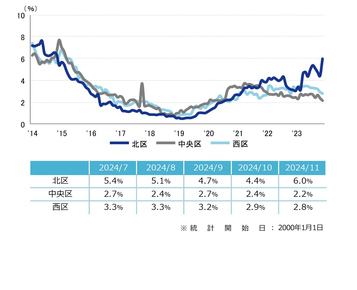 空室率 前月から大幅な上昇 「北区」は前月比1.6ポイントの上昇