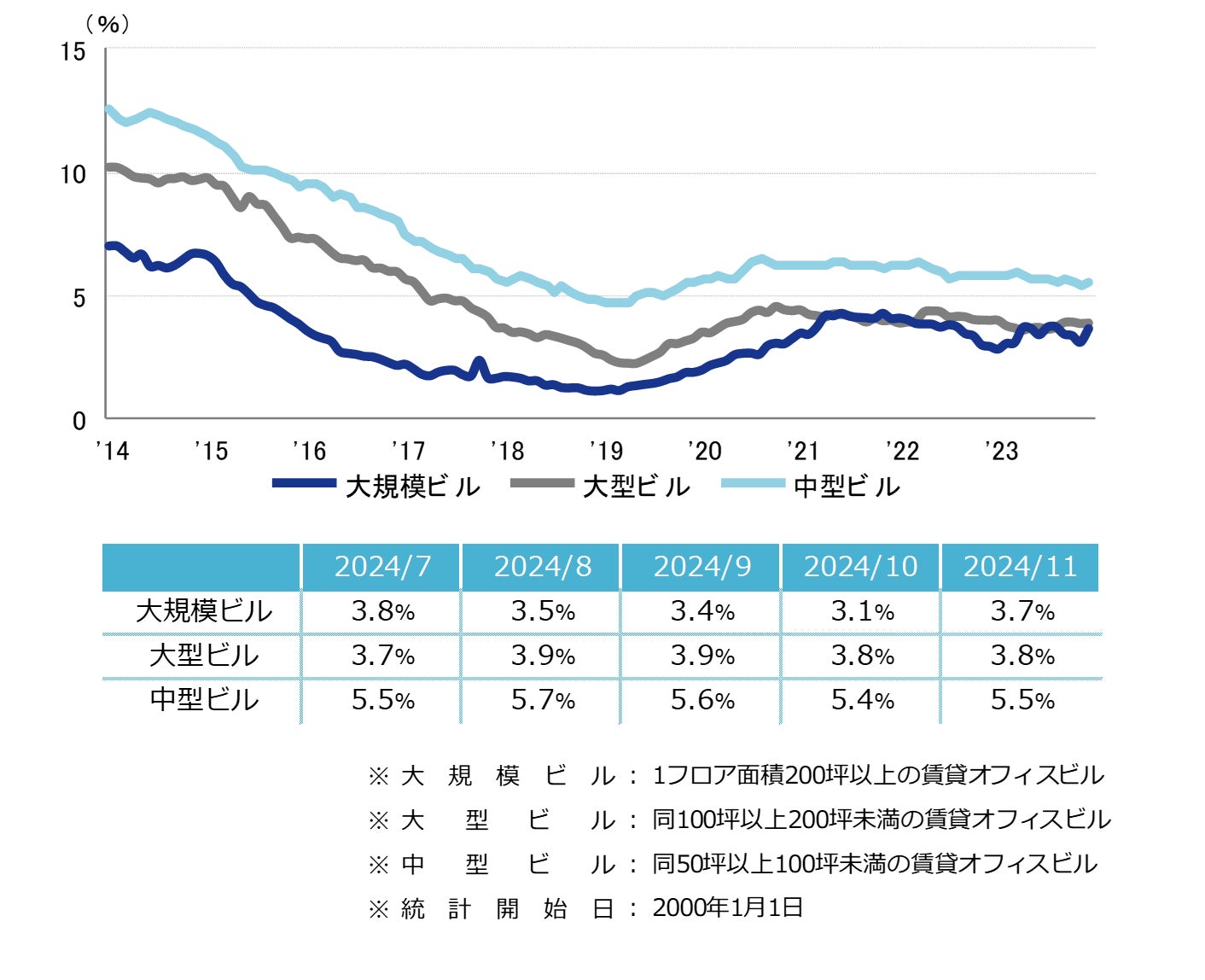 三幸エステート株式会社(本社:東京都中央区、取締役社長:武井重夫)は、2024年11月度の大阪市オフィス賃貸状況(空室率&現空面積:大規模、募集賃料&募集面積:大規模、規模別空室率、主要3区※1空室率:大規模)および全国6大都市(東京・札幌・仙台・名古屋・大阪・福岡)の大規模ビルのマーケットデータをまとめた「オフィスマーケット2024年12月号大阪」を公表します。
