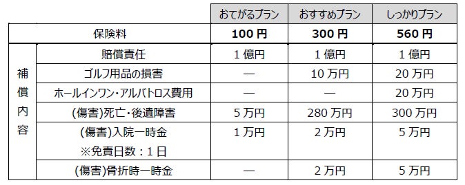 1日100円から加入でき、お手軽にゴルフプレー中の事故やケガに備えることができます。