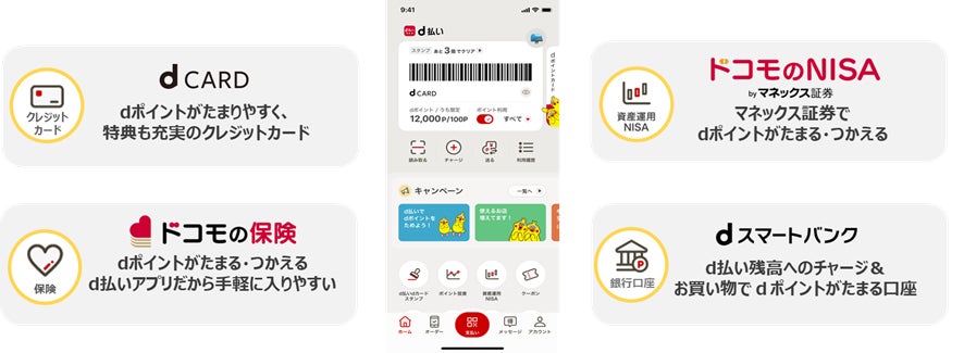 また、2024年7月30日(火)から、「d払い」アプリで保険の管理ができる機能を提供開始いたしました。保険契約の登録や、登録した保険の家族への共有ができます。さらに、お客さま自身が保険で備えることができているリスクを俯瞰的に確認することができます。詳細は、「d払い」アプリの保険アイコンからご確認ください。