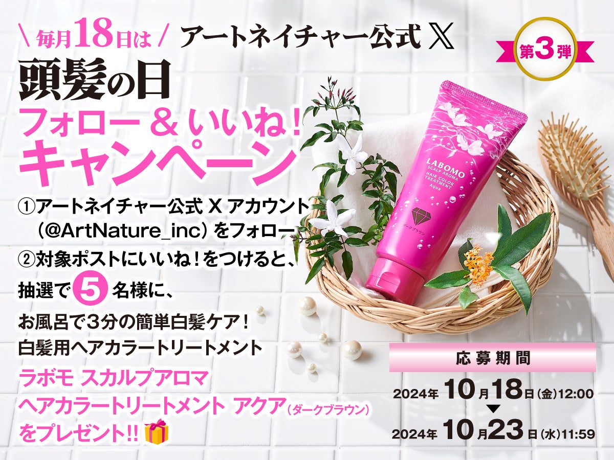 アートネイチャー公式Xアカウントにて「頭髪の日キャンペーン 第3弾」を開催!2024年10月18日(金)~10月23日(水)