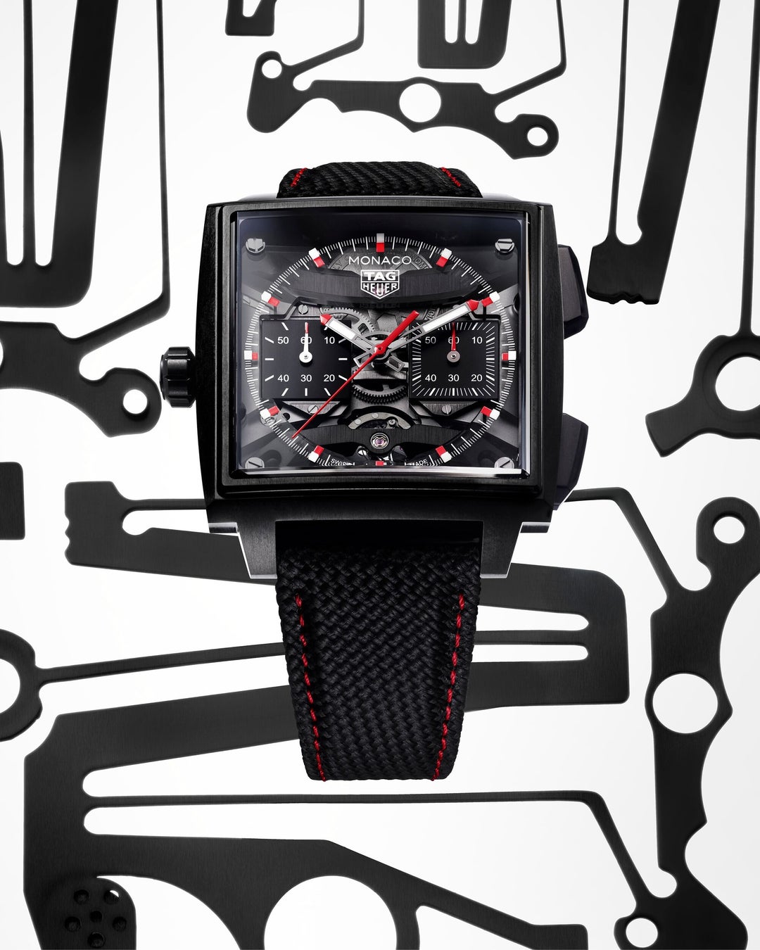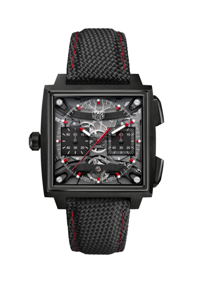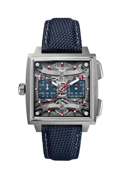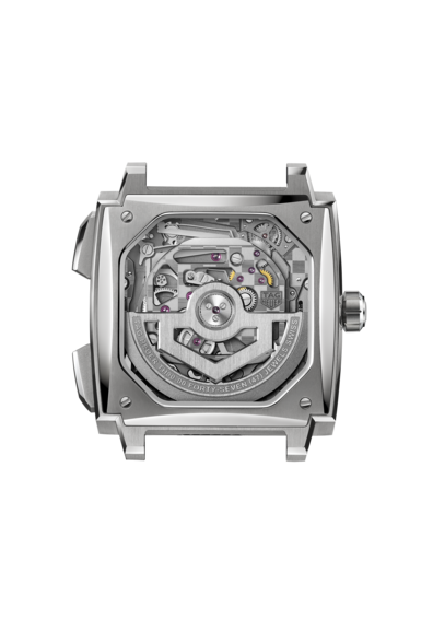 1969年に初代「キャリバー11」で確立されたシグネチャーである左側のリューズに加え、新たに採用された細長いプッシュボタンが特徴のこのモデルでは、人間工学を指針としてデザインを一新させた40 mmのグレード5チタン製ケースが目を引きます。角型のサファイアケースバックは、腕元への装着感を新たな次元へと高めることに貢献しながら、「タグ・ホイヤー モナコ」のケースに絶妙にフィットするよう開発された角型ムーブメントを余すところなく堪能することを可能にしています。