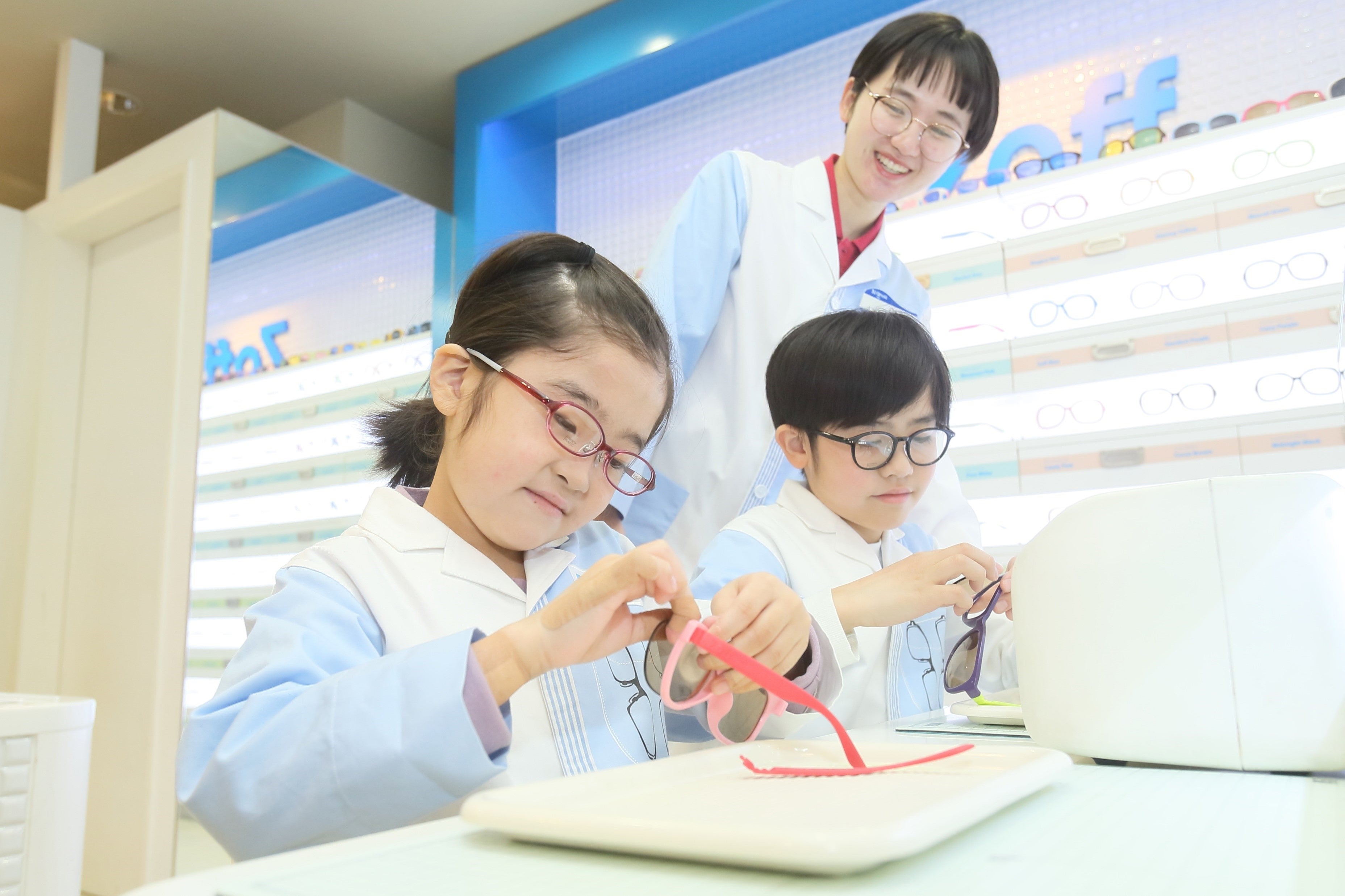 体験内容:「メガネショップの店員」として、メガネが目を守る役割があることを知り、お客様に気軽にメガネをかけてもらえるような接客のため、メガネの試着などをしながらメガネを理解します。また、「レンズの加工」「メガネの組み立て」の技術も体験し、一人前の「メガネショップの店員」を目指します。