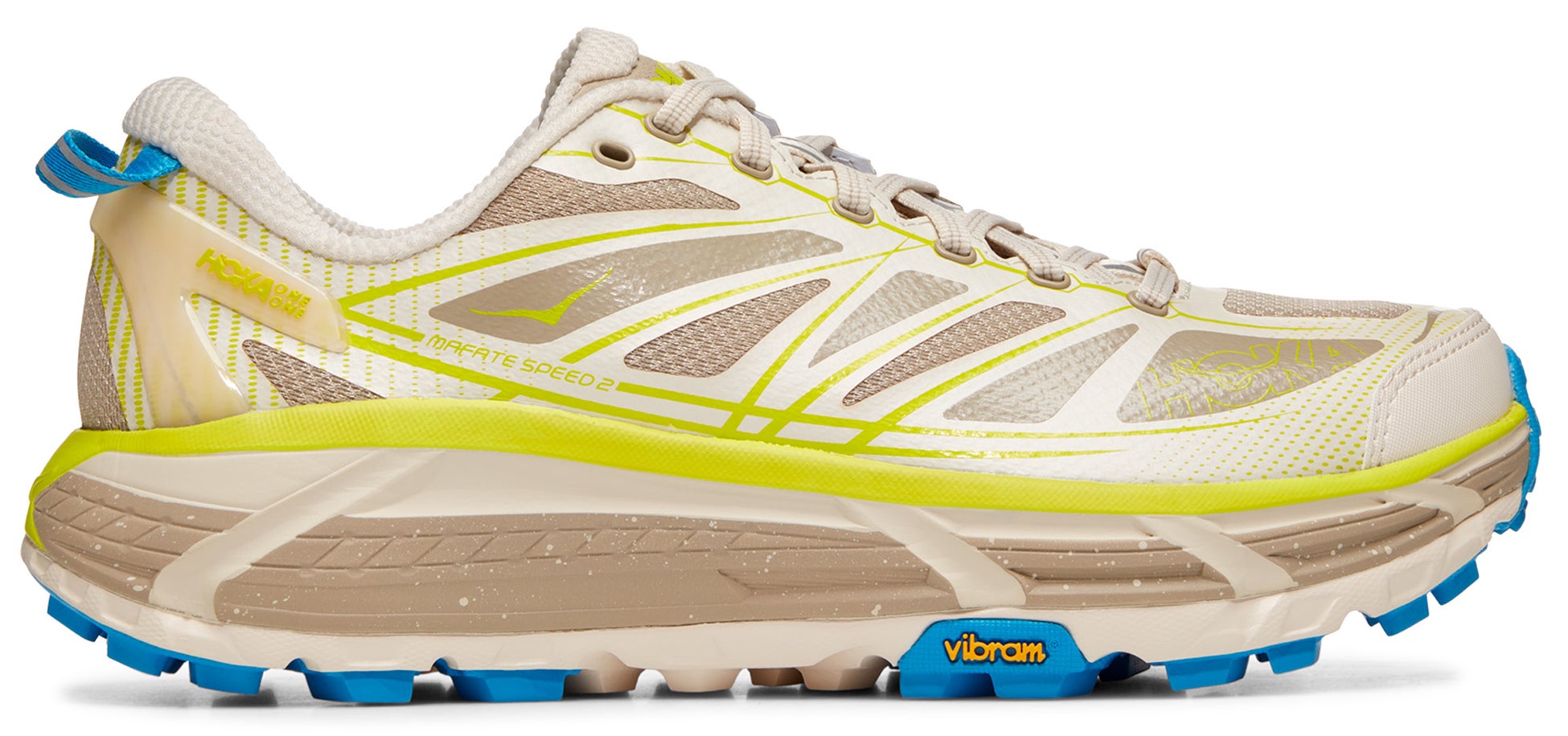 「MAFATE SPEED 2」は、あらゆる距離にわたってサポートとクッションを提供するために開発されたトレイルランニングシューズです。深めのアクティブフットフレームが踵をしっかりとホールドし、メタロッカー構造がスムーズなランを可能にします。様々な地形に対応する深さ5mmのラグを備えたアウトソールが優れたグリップ力を発揮。鮮やかなネオンカラーやHOKAのブランドカラーであるブルーの差し色、レザーを取り入れたアッパーが、コーディネートのアクセントになるデザインに仕上げています。