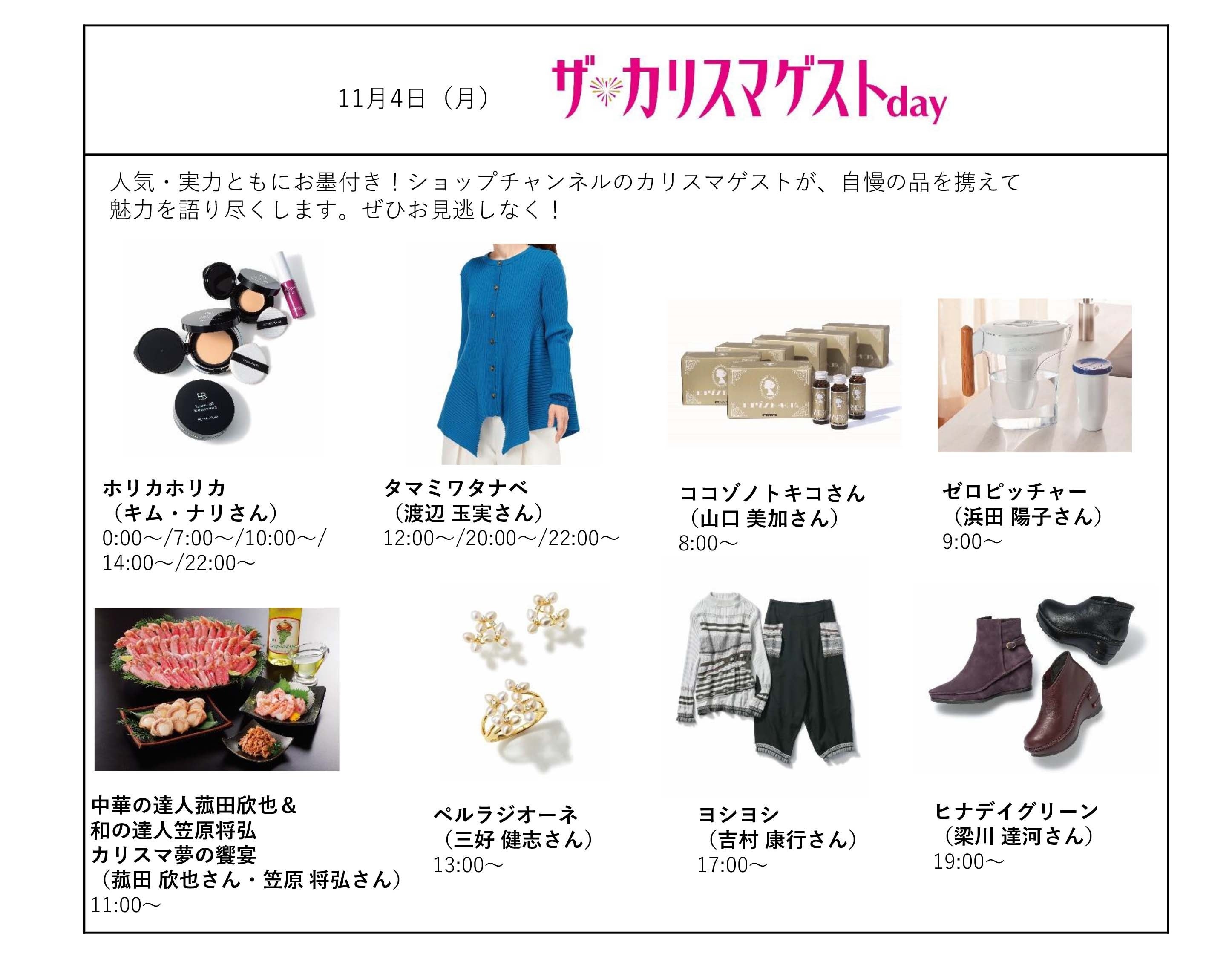 11月4日(月)は、ショップチャンネルのカリスマゲストが自慢の商品について語り尽くす「ザ・カリスマゲストデイ」を