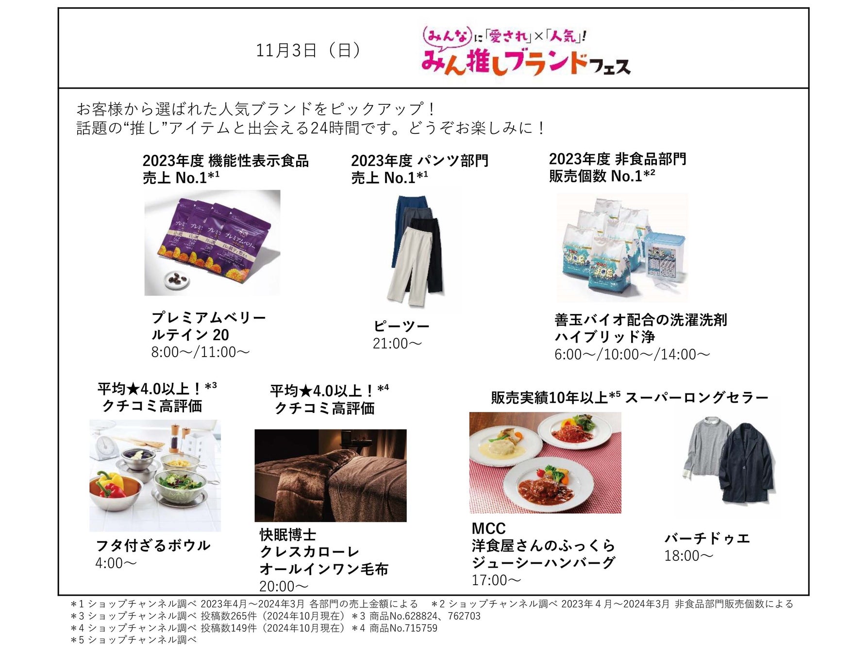 ショップチャンネル 11月3日(日)は新企画「みん推しブランドフェス」、11月4日(月)は「ザ・カリスマゲストデイ」を放送