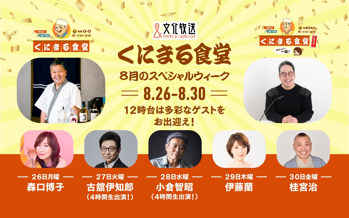 8月28日(水)は『くにまる食堂』のご意見番・小倉智昭が登場。4時間フルで出演します。