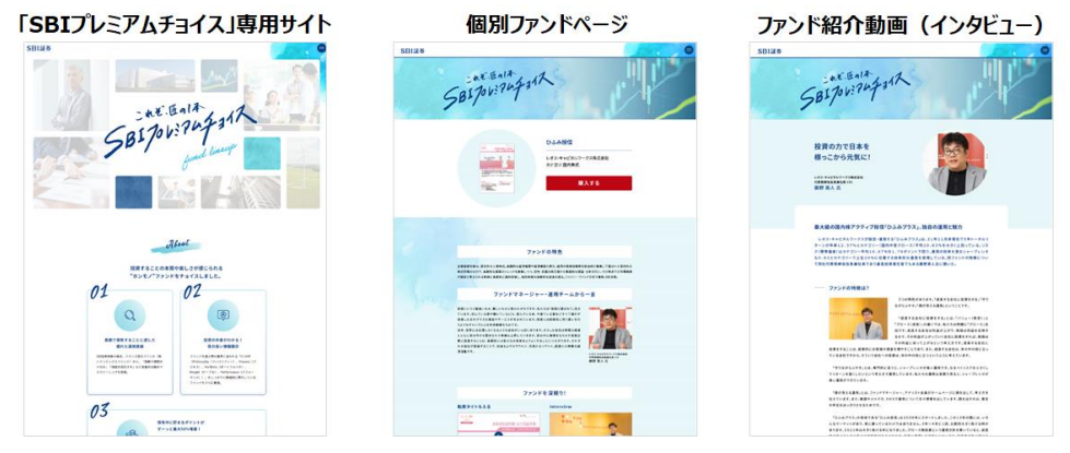 ① 対象ファンドの情報を配信する「SBIプレミアムチョイス」専用サイトの立ち上げ
