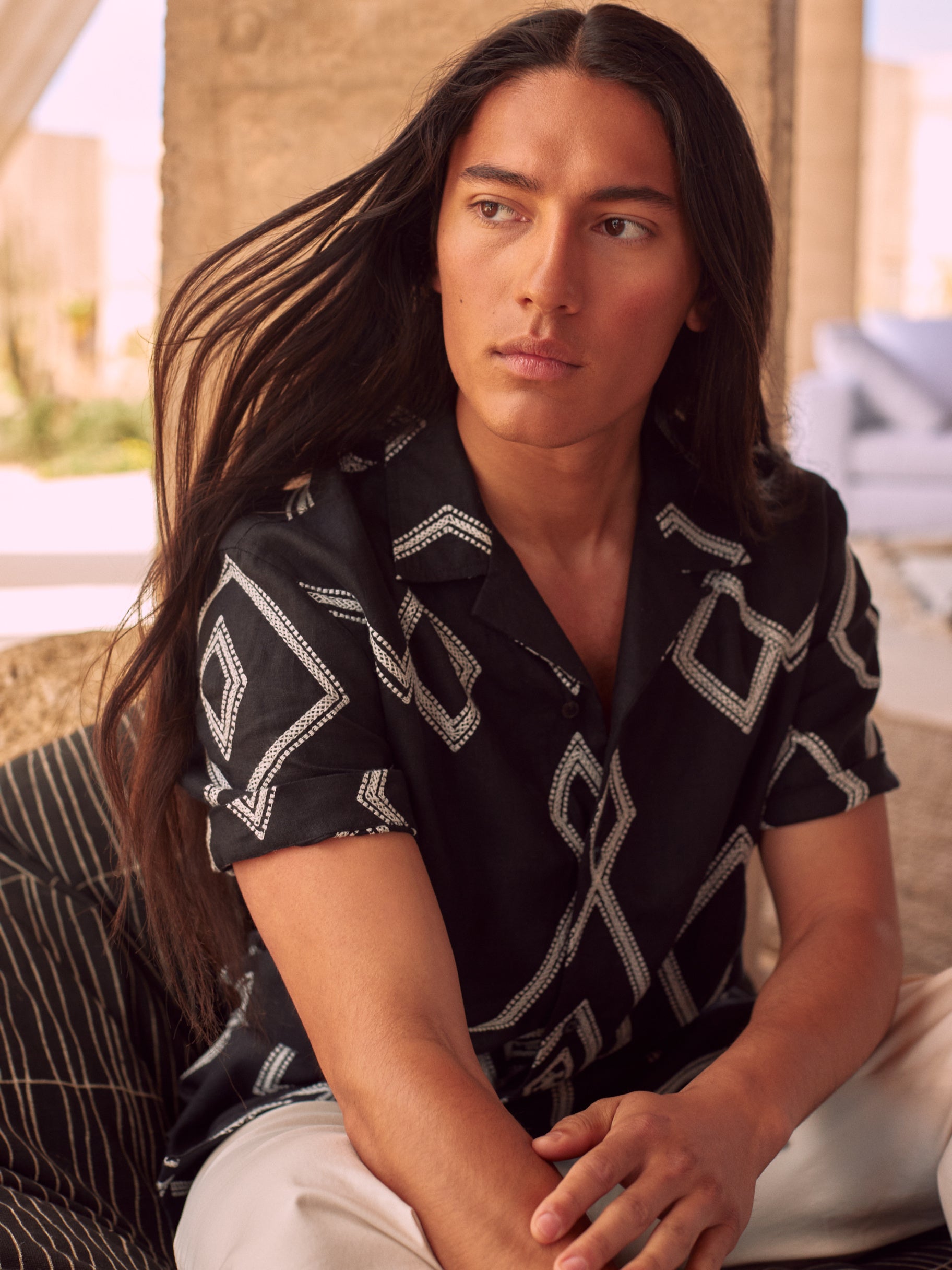 メンズは、ブランドのルーツでもある“旅”におすすめのリラックス感のあるシャツや、夏でも快適に着られるリネンスーツなど、着心地の良さを実現するリネンアイテムが豊富にラインナップします。シャツはリゾート気分を高めてくれる刺繍が施された開襟シャツや、Tシャツのように柔らかな着心地のリネンジャージーシャツ、エフォートレスな装いに仕上げてくれるドレスシャツが充実。さりげないハウンドトゥース柄が魅力のスーツは半裏仕立てになっているので、涼しく爽やかな着心地が楽しめます。