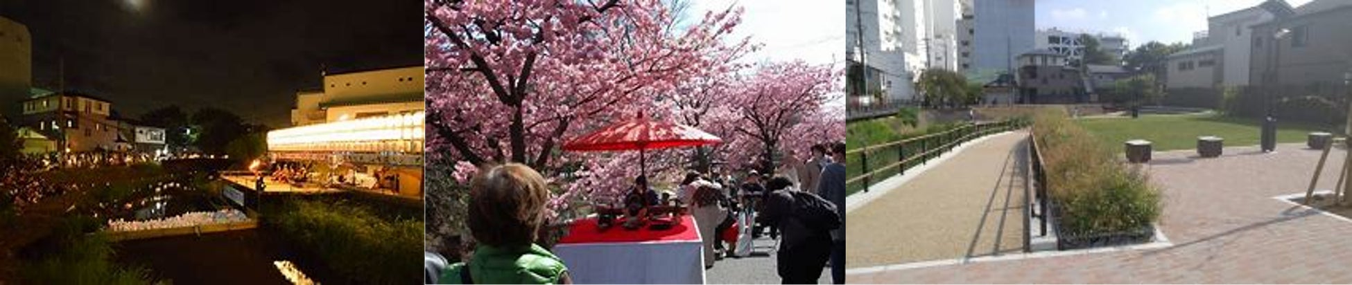 松戸駅から程近くにある「春雨橋親水広場」は、地域の歴史・文化の情報発信の場となる「まちなかの憩いの空間」として、また地域の交流拠点として活用されることを目指し整備しました。広場のほか、ウッドデッキやベンチ等も設置され、「献灯まつり」だけでなく、イベント会場としても活用されています。対岸側に設置された階段も同じ空間のようにデザインされています。