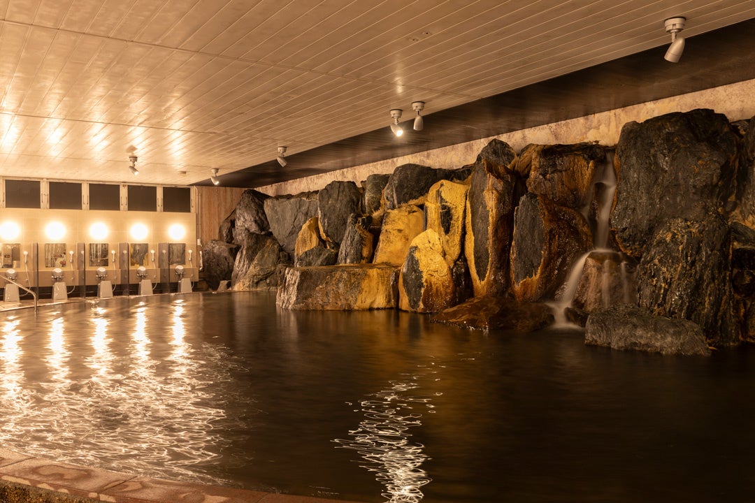 モダンな雰囲気漂う大浴場をはじめ、歴史ある塩原温泉郷を館内湯めぐりで満喫