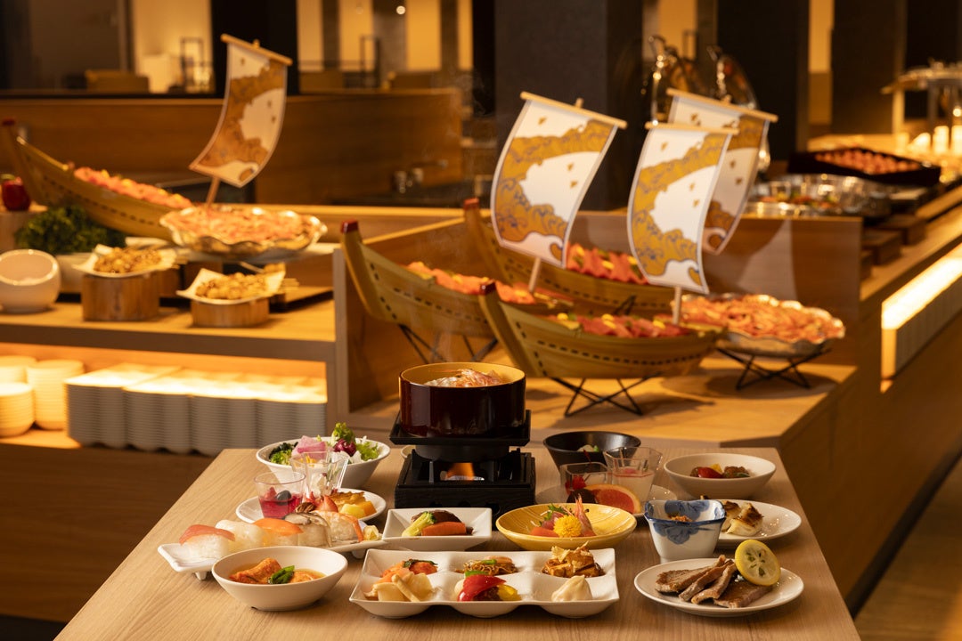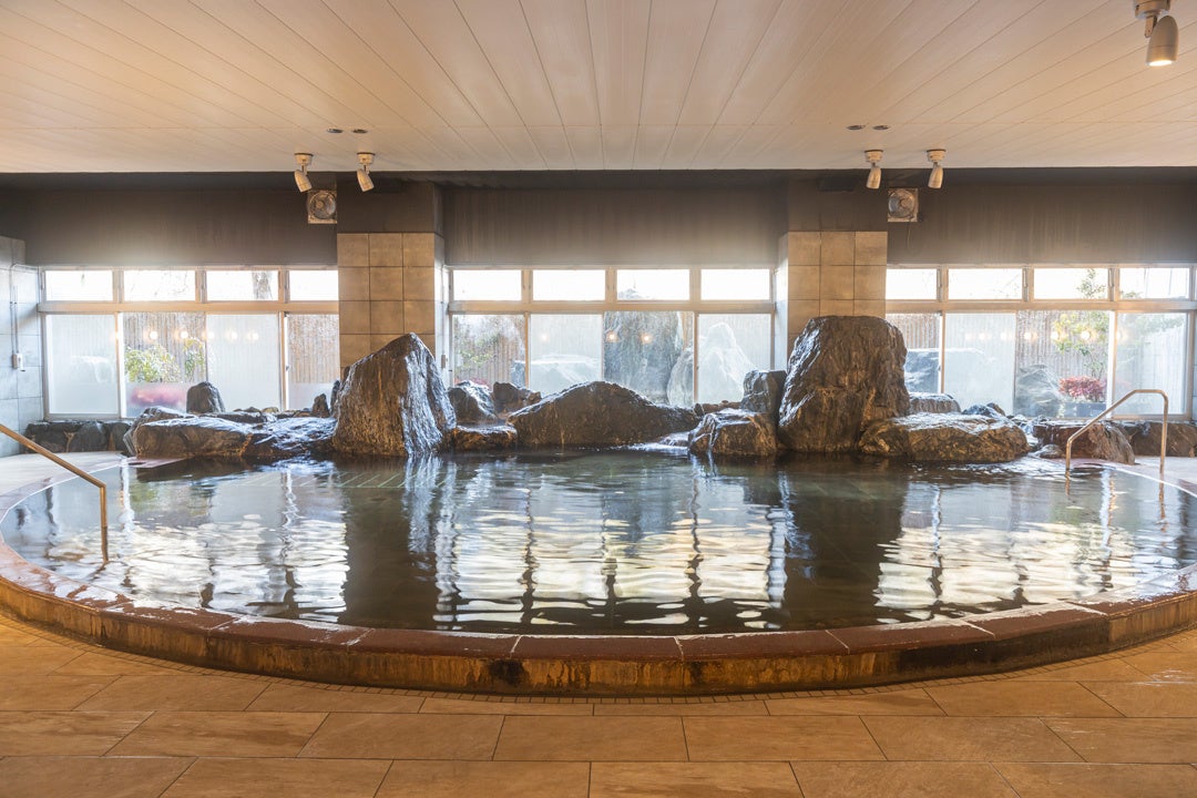 開放感にあふれた空間で温泉を楽しめる大浴場。ちょっとした贅沢感を楽しめるメニューやその土地ならではの食材を味わえるバイキング。