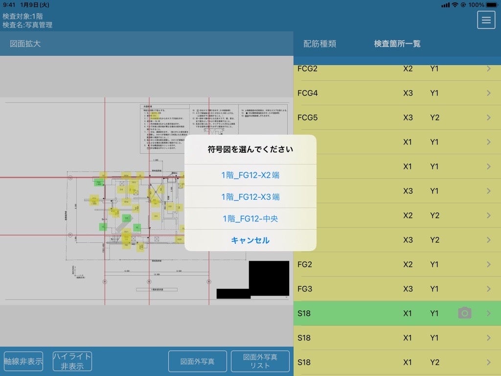 さらに、配筋写真の撮影状況を一覧で見える化し、撮影漏れを防止するため伏図上に写真撮影が必要な箇所をハイライト表示する機能についても、より便利にご利用いただけるよう改善しました。