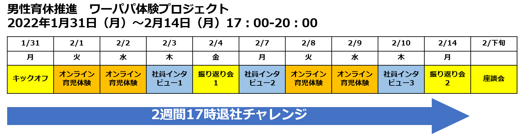 ■「男性育休推進 ワーパパ体験プロジェクト」プログラムスケジュール・実施内容■