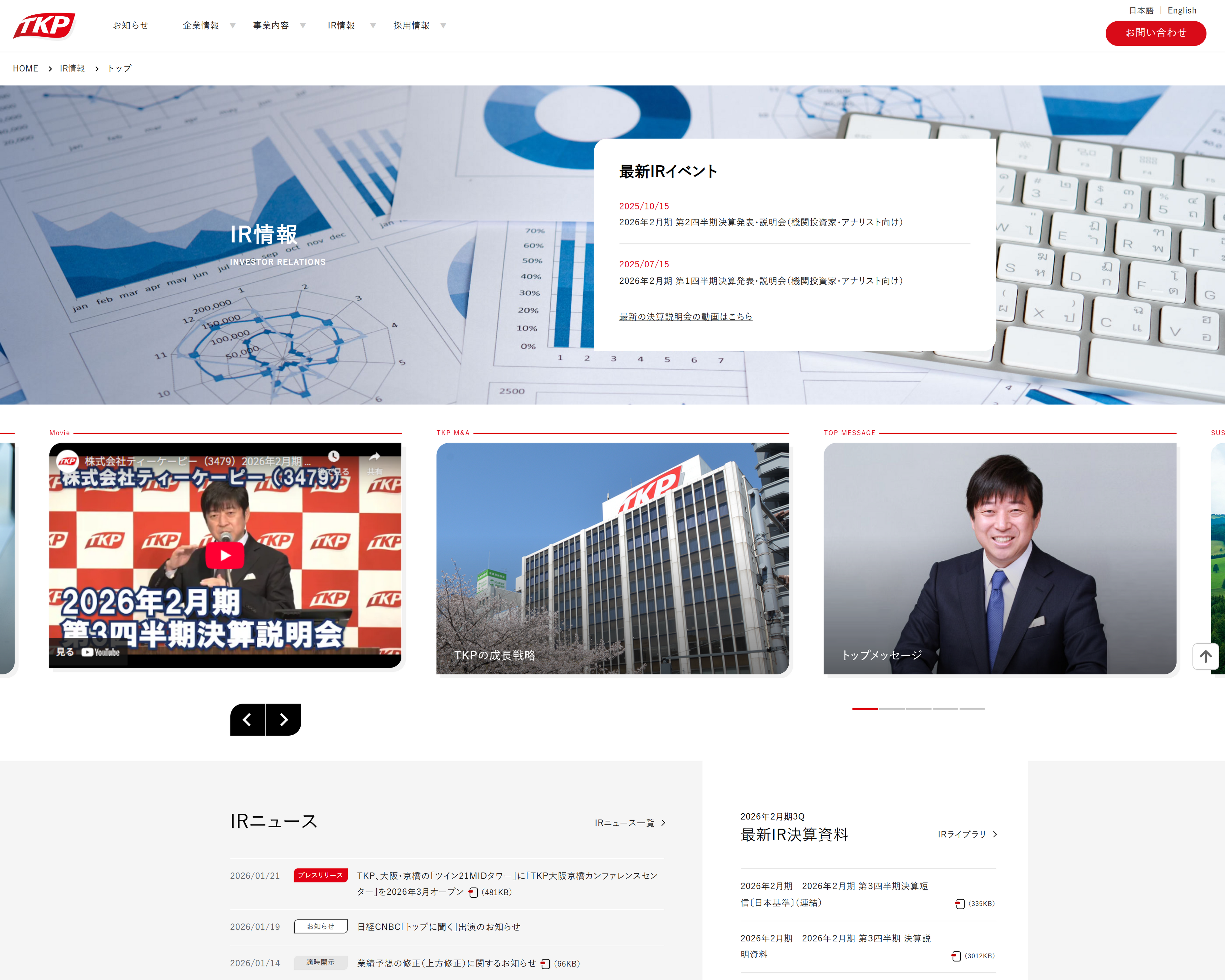 〈企業情報〉https://www.tkp.jp/ 〈IR情報〉https://www.tkp.jp/ir/