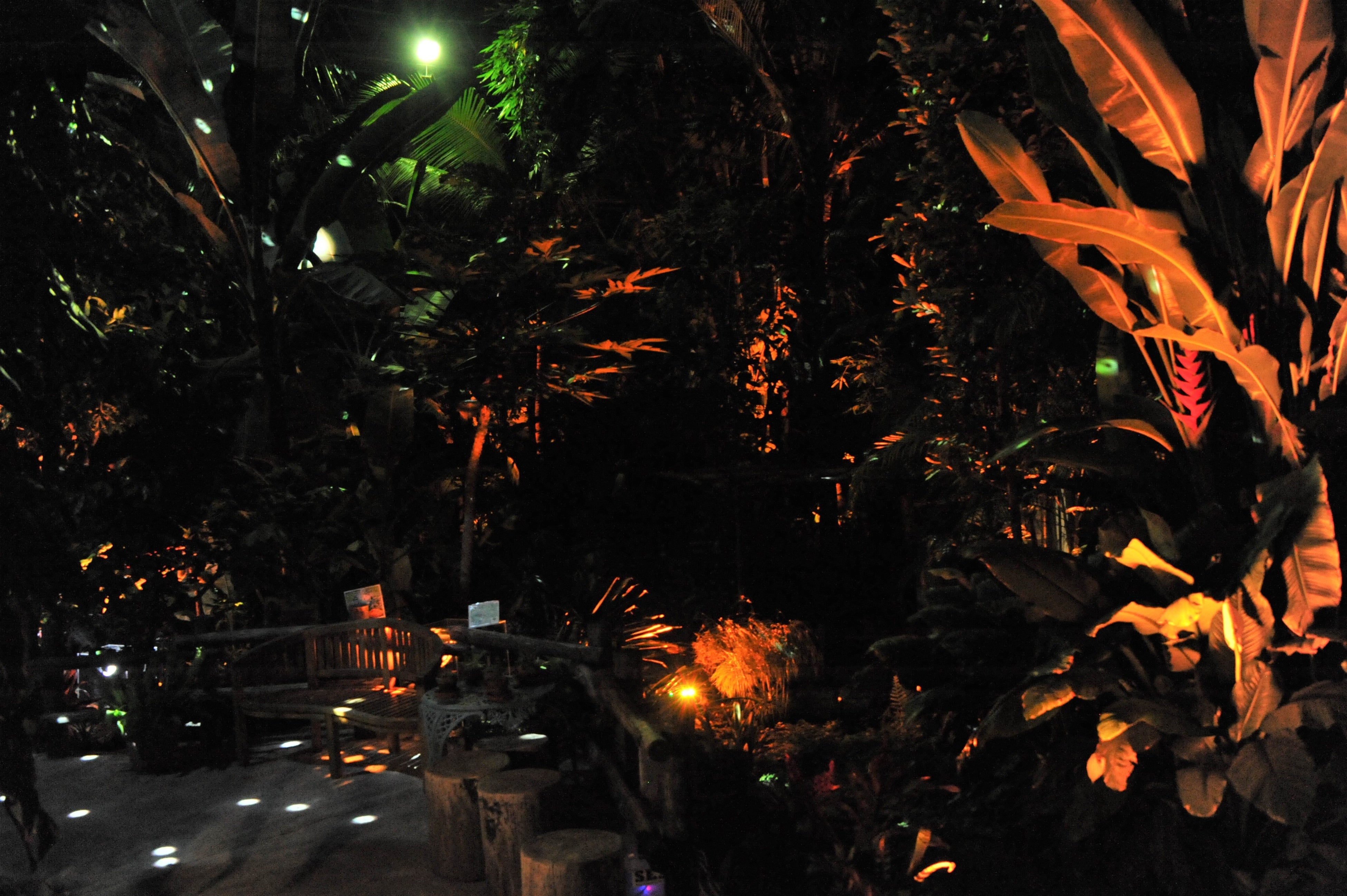 今年はナイトジャングルもパワーアップ!光の演出に浮かび上がる南国の植物のシルエット、そのスケールの大きさを体験してください!非現実的な空間に引き込まれることまちがいなし!