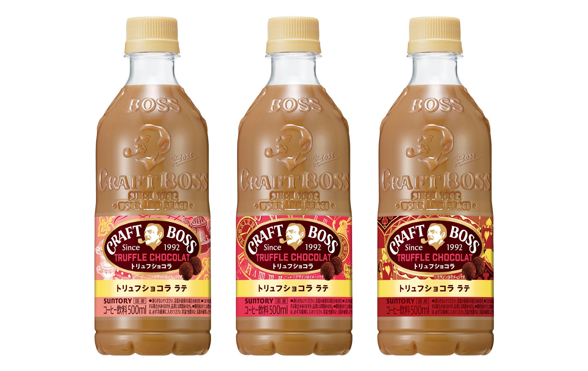 昨年大刷新し、ボコボコボトルで大好評の「クラフトボス」コーヒーシリーズから、コーヒーショップでも人気のチョコレートフレーバーの「クラフトボス トリュフショコララテ」を発売します。