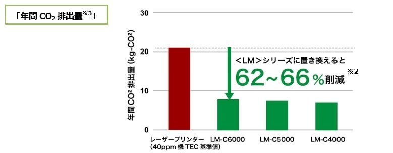 ※2: <LM>シリーズ各機種のTEC値とENERGY STAR®画像機器基準Version3.0にて定められたTEC基準値(40ppm機のTEC基準値)で比較した場合の削減比率。