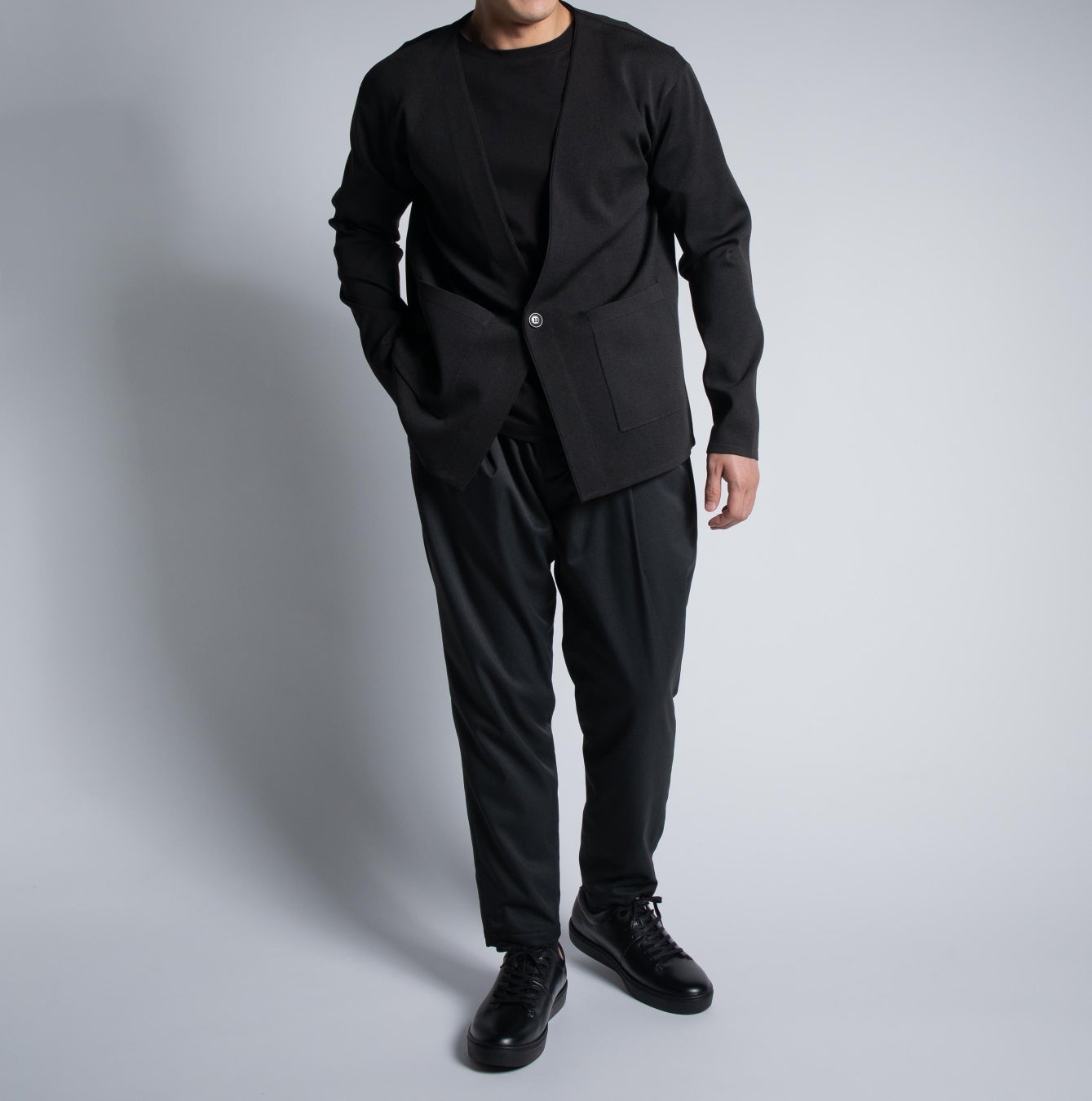 特徴:タフで高機能な特殊な糸を使用した、ウォッシャブルな高機能ノーカラーニットジャケット。自宅洗濯機で丸洗い可能で、毛玉になりにくく、型崩れもしにくい。さらに放電テープにより静電気も抑制。