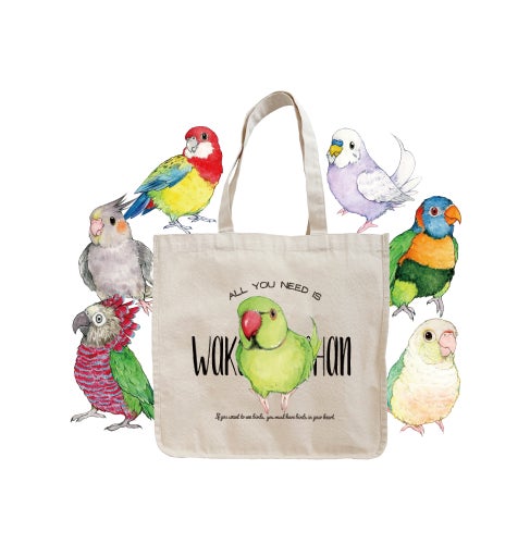 まち付きビッグトートのセミオーダー。100種類以上の鳥さんイラストからお選びいただけます。名入れも可能です。※後日配送のみ