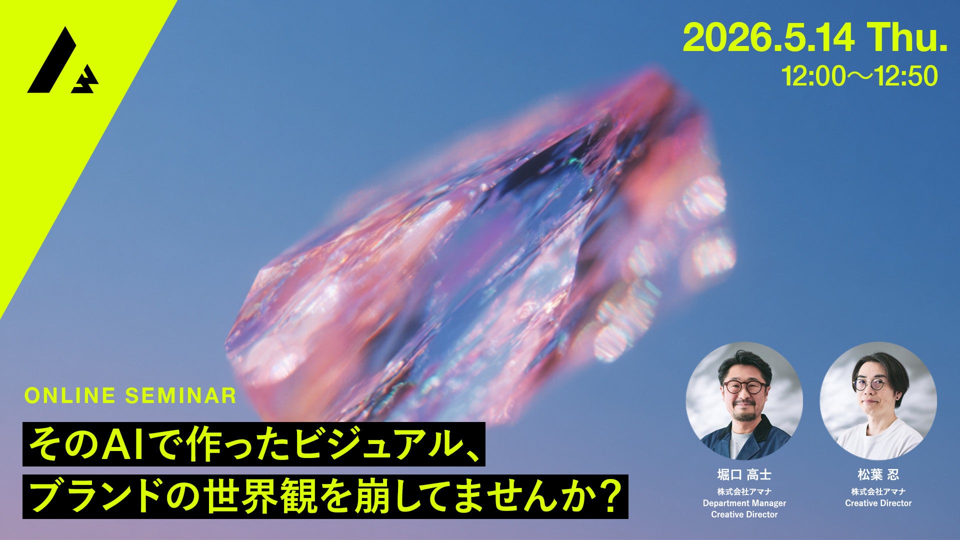 コミュニケーション変革をクリエイティブで実現する株式会社アマナ(本社:東京都品川区、代表取締役社長:金子剛章、以下「アマナ」)は、2026年5月14日(木)、「そのAIで作ったビジュアル、ブランドの世界観を崩してませんか?」をテーマにオンラインセミナーを開催します。