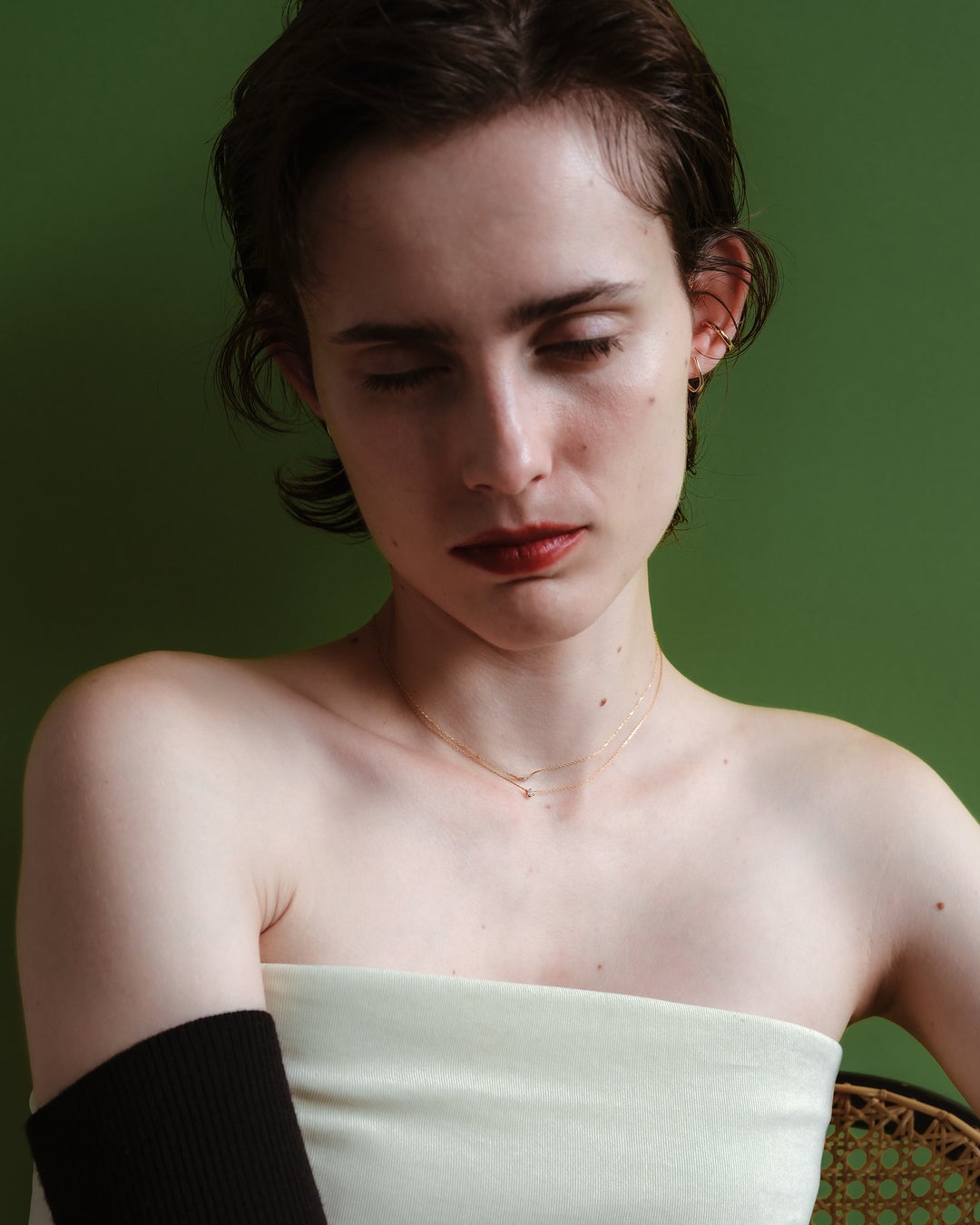 [beauty mark]とは[ほくろ]を意味します。欧米では顔まわりのほくろをビューティマークとよび、その人のありのままの魅力として捉えられています。チョーカーのように首元に添わせて着ければほくろのように素肌に馴染み、あなたをより魅力的に見せてくれます。