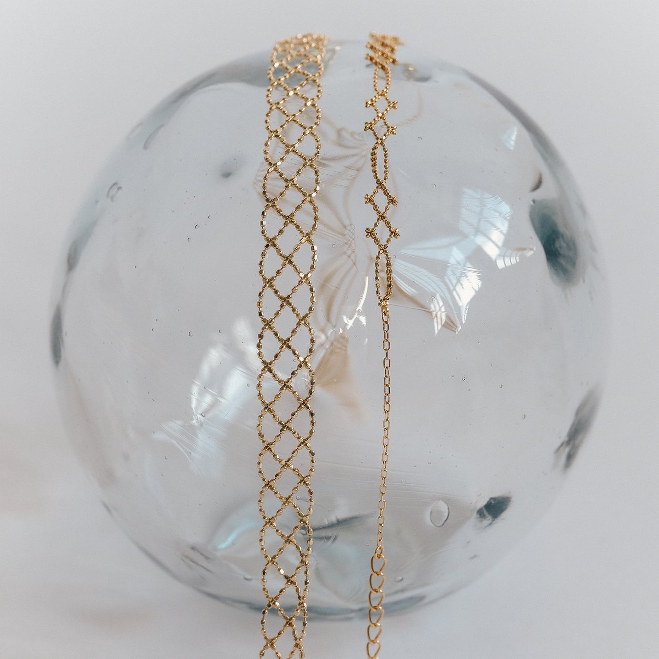 繊細に光り輝く[éclat lace]シリーズ。一つ一つ手作業で仕上げられたジュエリーは、職人の高度な技術が光ります。レース模様のようなデザインは光が当たるたび繊細にきらめき洗練されたスタイルに。チェーンで形作られたジュエリーは柔らかな手触りで素肌にぴったりと馴染みます。