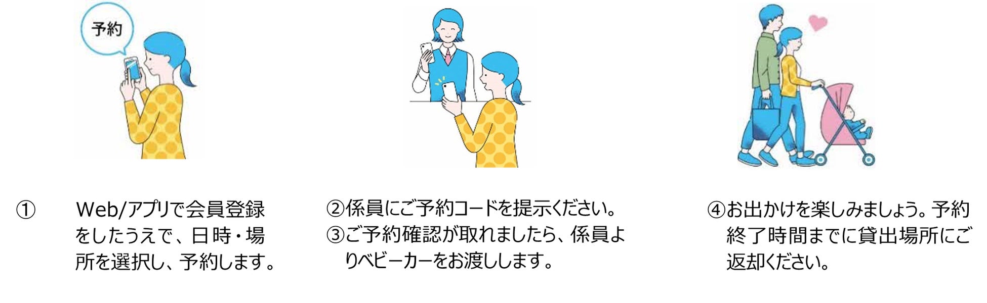 「もっと気軽に子供と外出できる社会を!」をコンセプトに、子育て世帯が子供と気軽に外出できる社会の実現を目的とした、外出先でも便利に利用できる予約可能なベビーカーのレンタルサービスです。観光や旅行の際はもちろん、お買い物やランチなど短時間でも気軽にご利用いただけます。