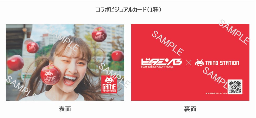 百田夏菜子1stアルバム「ビタミンB」ジャケットデザインの真っ赤なリンゴにタイトーステーションのロゴを配した印象的なコラボ限定ビジュアルをノベルティ化!